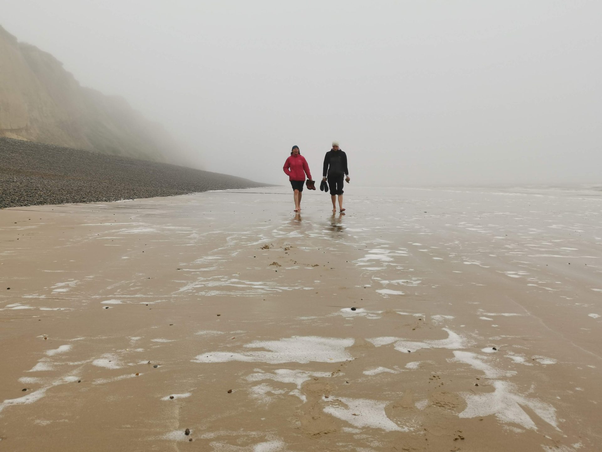 Daughter Kat – now working with the Rudolf Steiner community in Switzerland – in the coastal mist during lockdown. Kat/Katie was with us from March right through to the end of July, and it, and we, worked brilliantly.