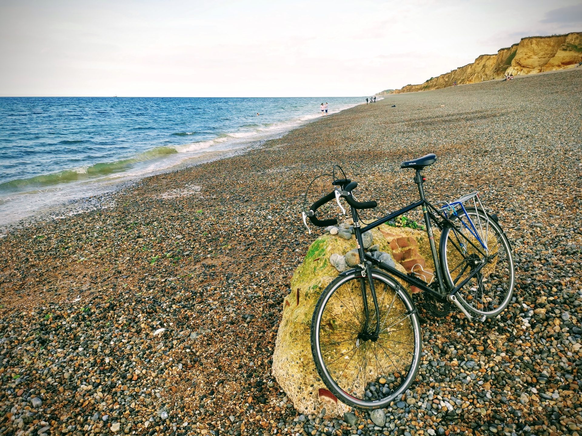Lockdown has also meant many an early morning spin on the bike, here out to Weybourne beach looking back towards home beyond the far hill to the right.