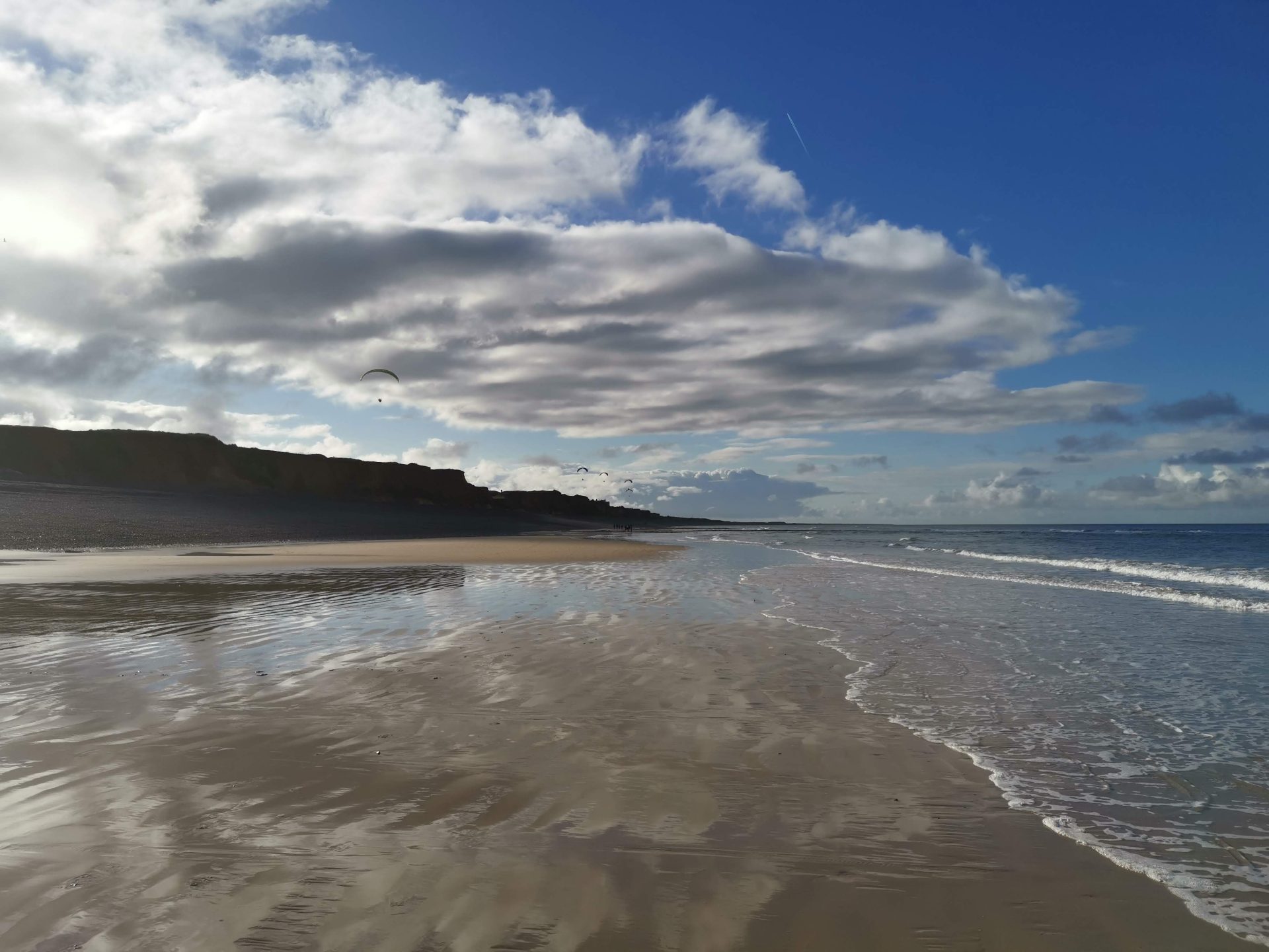 We haven’t travelled silly distances this year, but the North Norfolk coast has continued to soothe us in these Covid times with the loveliest walks and views. This one about 20 minutes from our front door in Sheringham, looking West towards Weybourne and Blakeney Point. On this day with paragliders using the updraft of a stiff northerly breeze to coast along the cliffs.