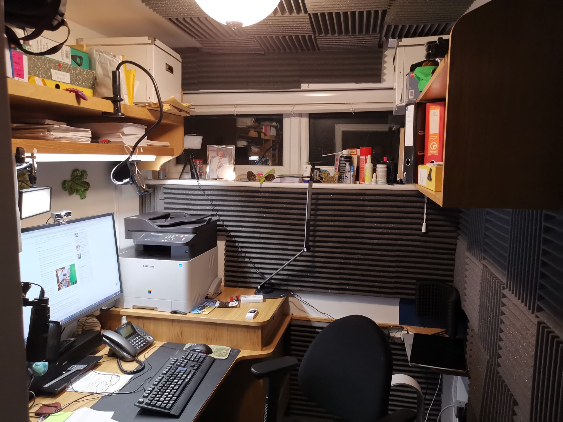 This photo added to illustrate the impact of lockdown – Mark’s studio/office/padded cell, whence EMDR therapy and training is shared with clients around the world, from Canada and the US through the UK and Europe all the way down to Australia and NZ. The pandemic has unleashed our therapy in the most astonishing way, and neither of us will be returning to in-person work even when – if – this is all over.