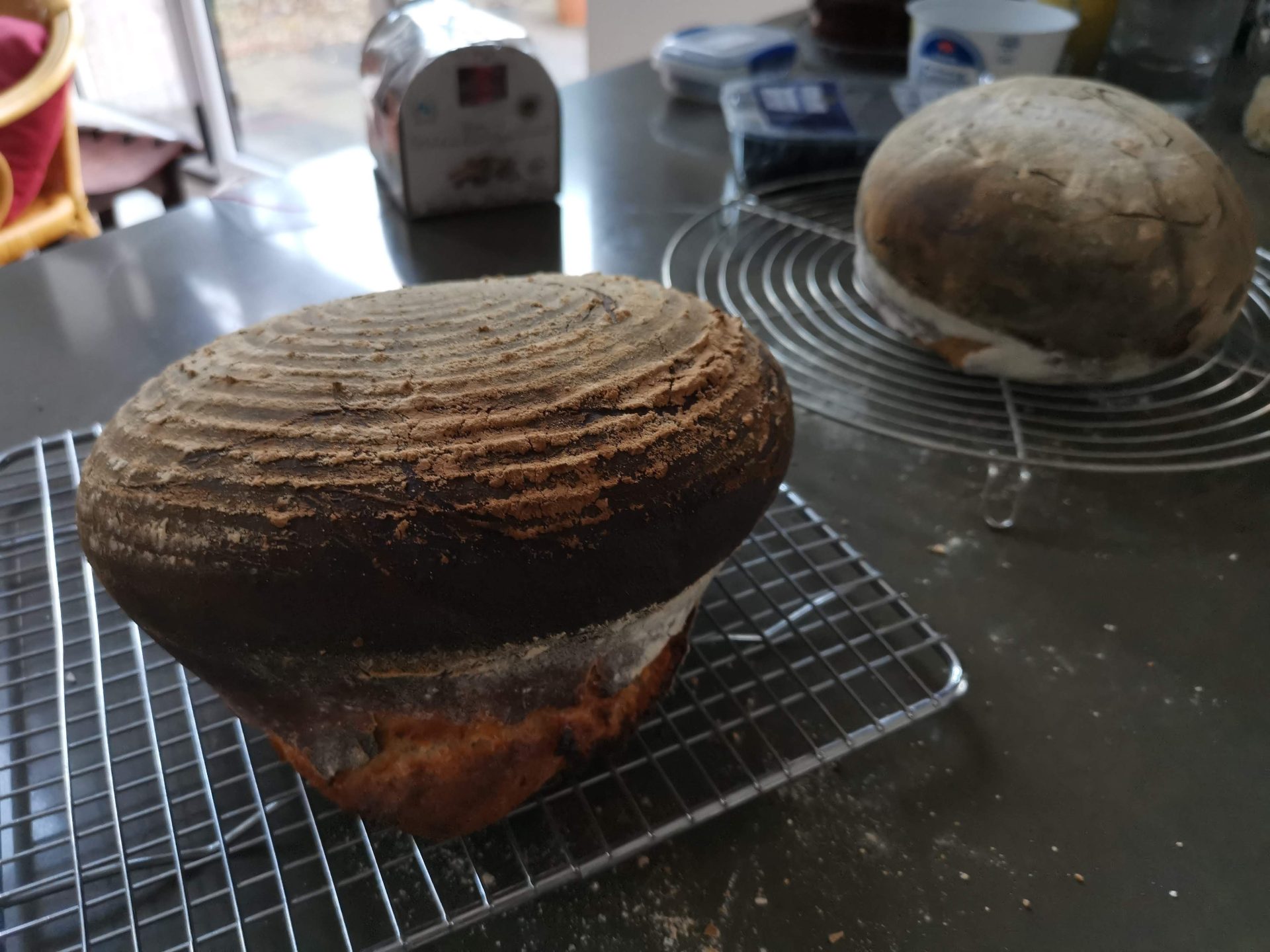 And yes, sour dough has been part of the picture. These two slightly overdone as usual, but with our own starter and thoroughly delicious.