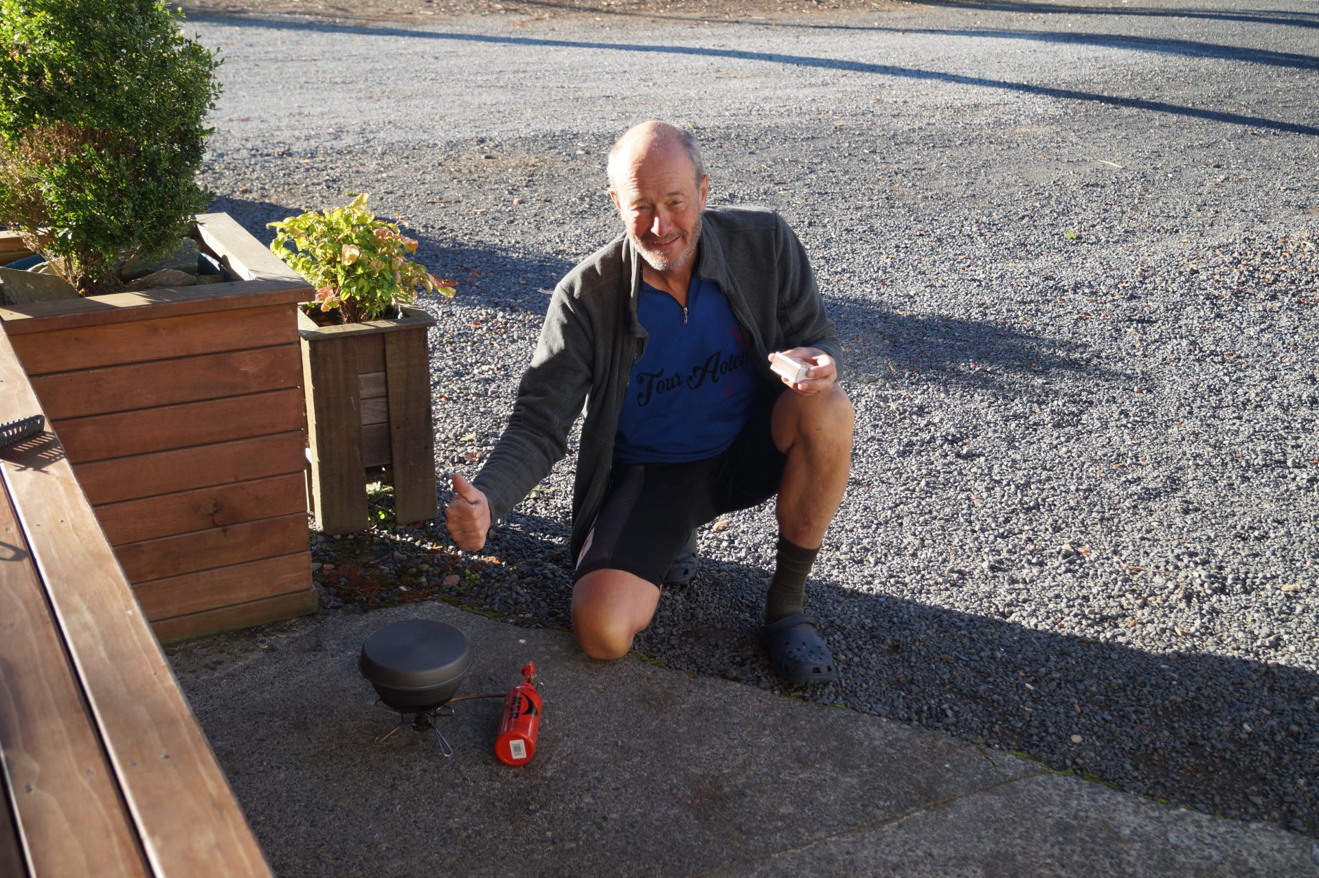 Proudly boiling our first pot of water for cups of tea at last night’s camping spot. A lot of weight to carry for the return on investment, but worth it.