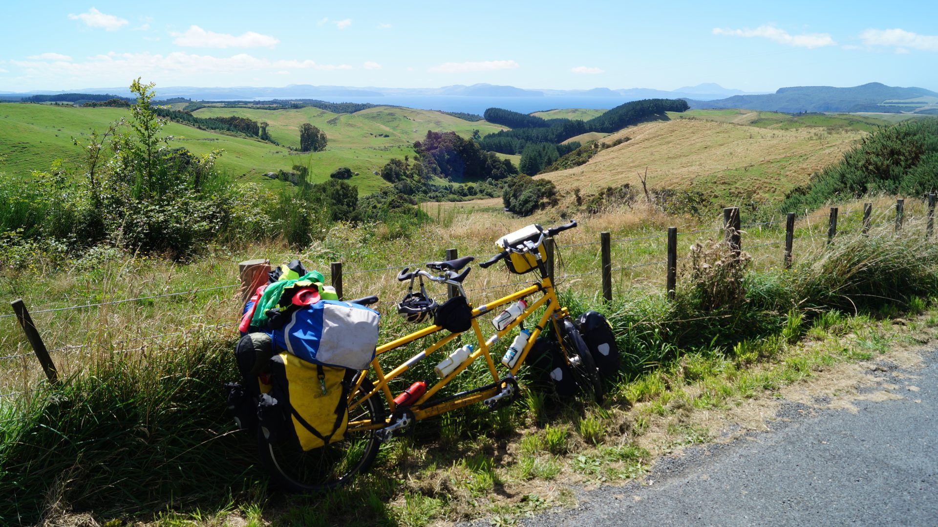 The view down over Lake Taupo from nearly-Turangi. One weary but pleased stoker.