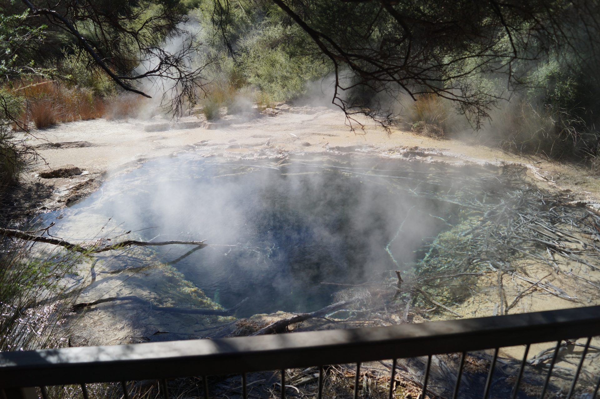 Volcanic hotpools at Tokaanu – these ones at boiling point, but the customer-friendly ones a delightful 40 degrees or so – our third natural springs hotpool experience of the trip so far.