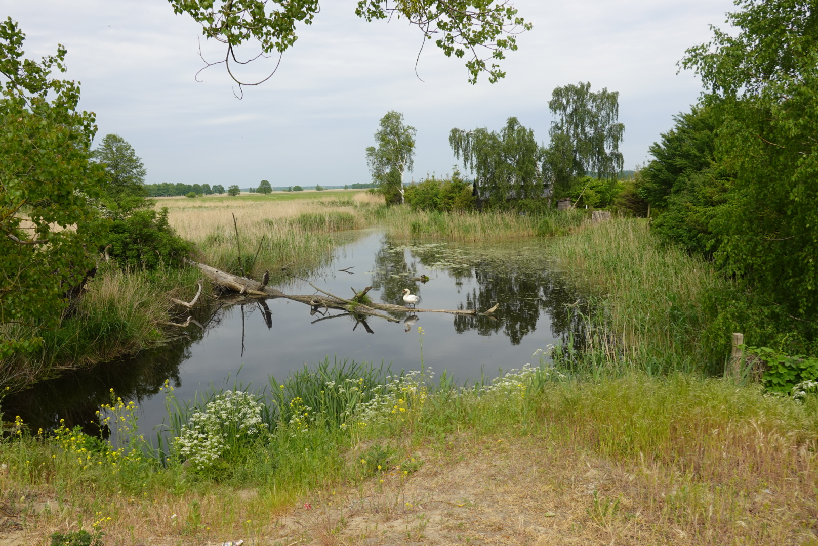 Over 110km of woodland and marginally-touched wetland nature, we enjoyed swans, noisy frogs and relays of equally noisy cuckoos, and (boy, do these things matter) a well -surfaced, long-distance cycle route, co-financed by, yes (like our refurbished train where I’m writing these notes on my mobile), the EU.