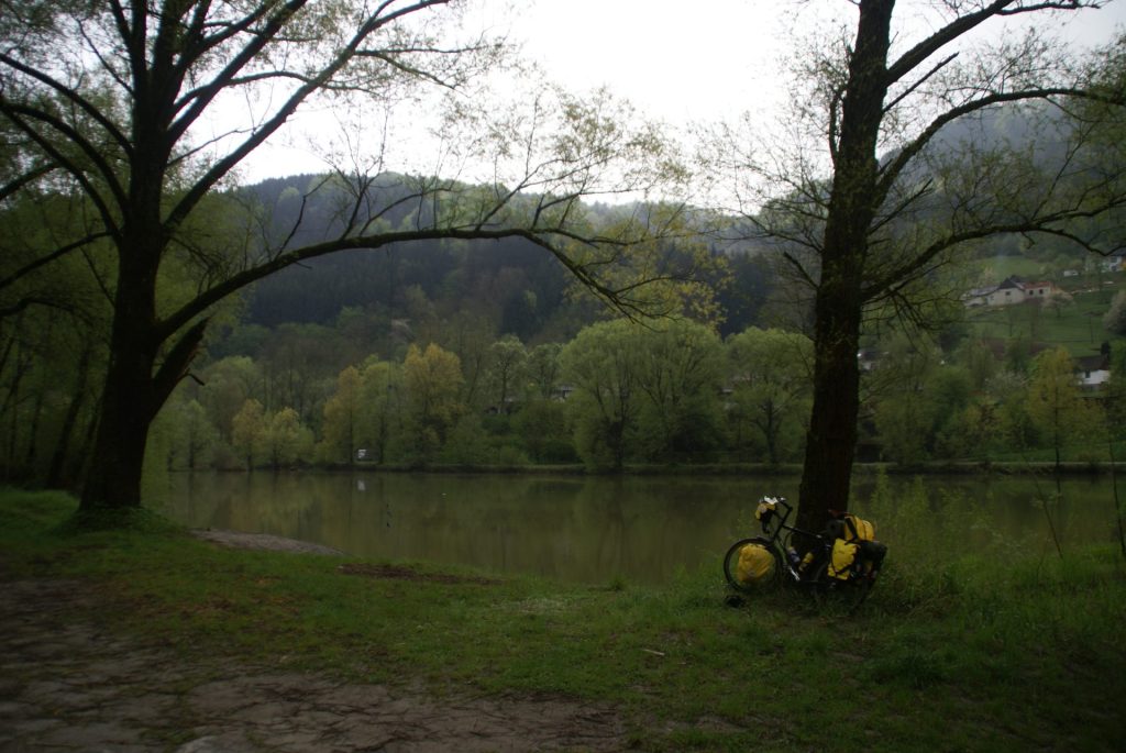 I’ve ended up having to put up the tent anyway, in Tulln on the Danube about 30 miles short of Vienna.Thank Heaven for waterproof Ortlieb panniers, so at least my sleeping clobber is dry.