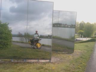 Offering an unusual opportunity also for self-reflection, as you can also see. Always good in the therapeutic business – but I can’t immediately see why the local folk at this point of the Austrian Danube put up a line of perfectly honed mirrors alongside the cycle path. Perhaps they make mirrors there?